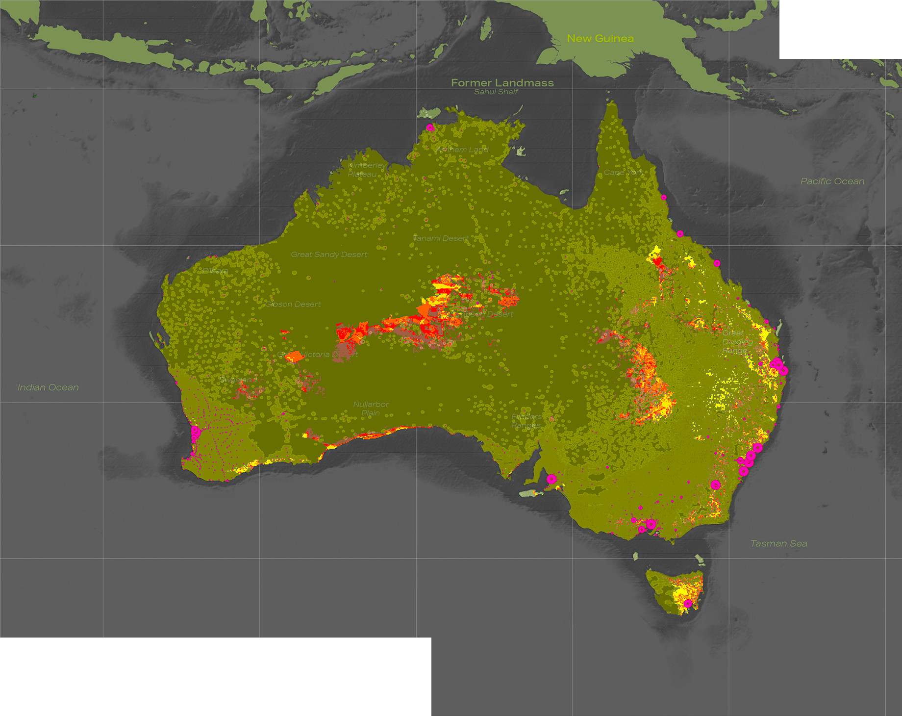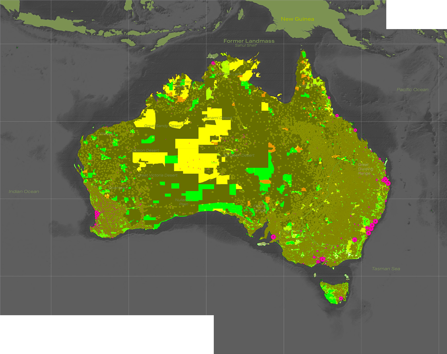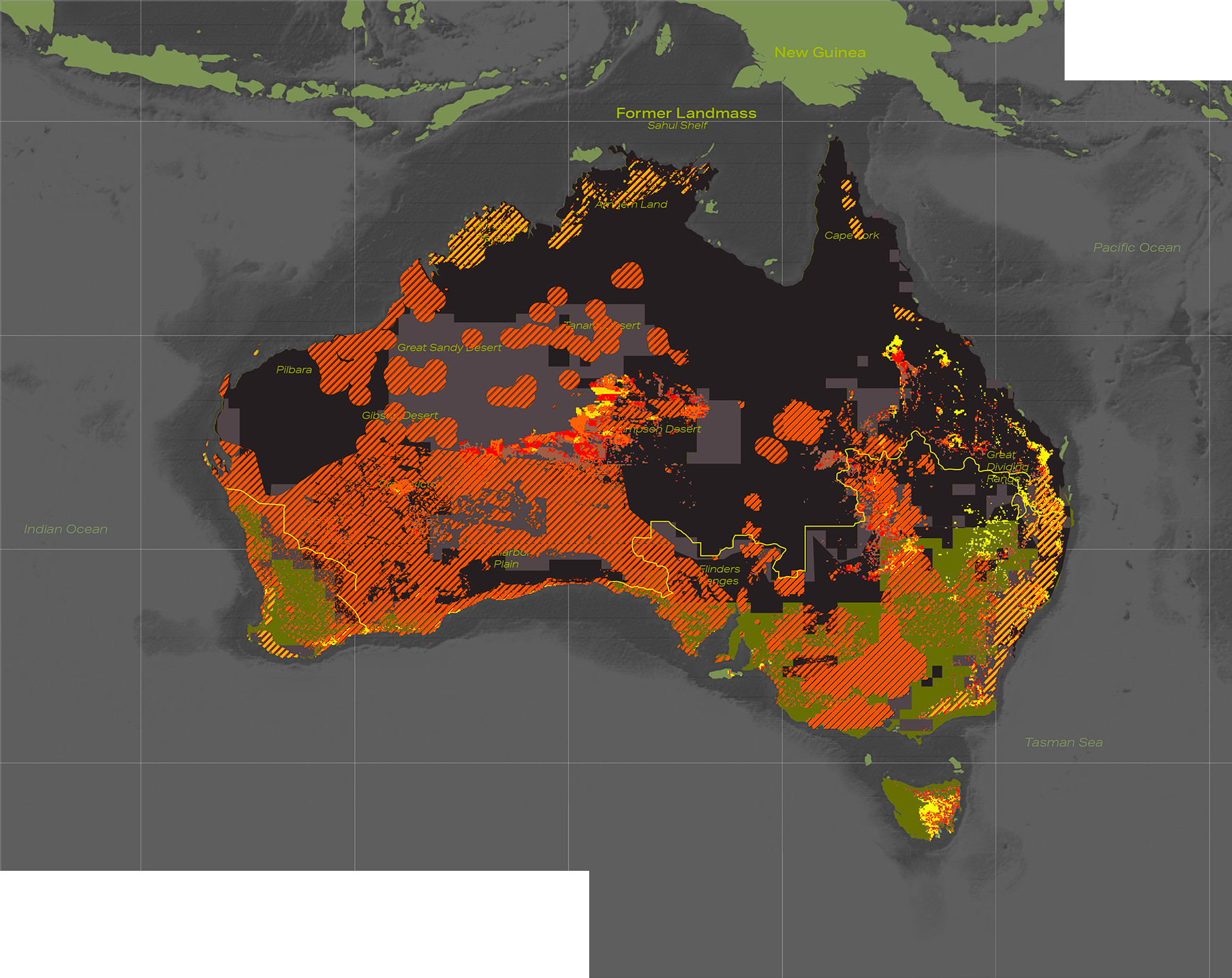 A series of mappings to help contextualize the potential reintroduction of Thylacinus cynocephalus