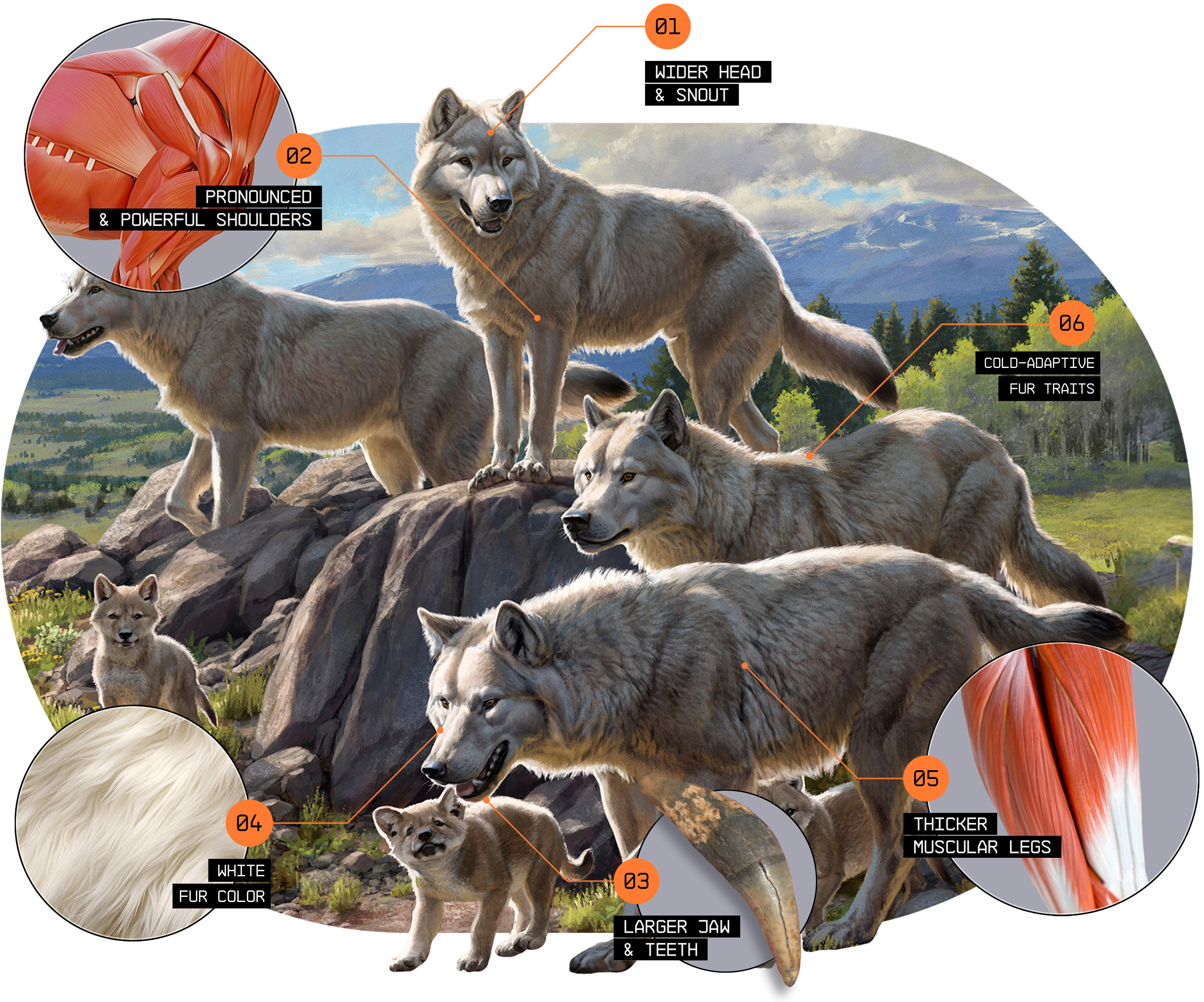 The widespread distribution of dire wolves across geography indicates an ability to withstand conditions in a multitude of landscapes. However, in spite of their impressive population spread, dire wolves predominantly occupied open lowland areas, where large prey was once abundant and easy to see.