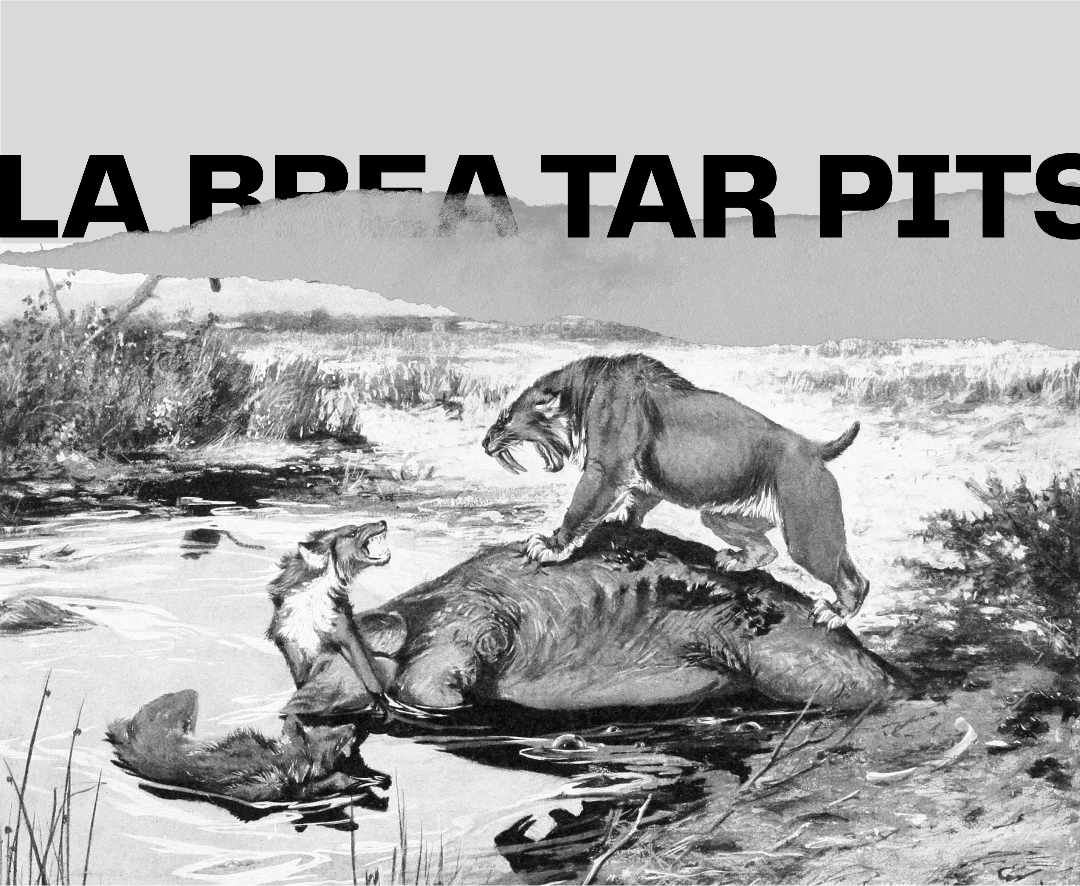 Located in Los Angeles, California, Rancho La Brea holds one of the world's richest collections of a single-mammal community through time. Remains showcase a timeline that runs from the last Ice Age, through the arrival of man in North America to the ever-transforming urban landscape of today. The most common mammals found in the pits include dire wolves (Canis dirus), saber-toothed cats (Smilodon fatalis) and coyotes (Canis latrans)—all of which are carnivores.
