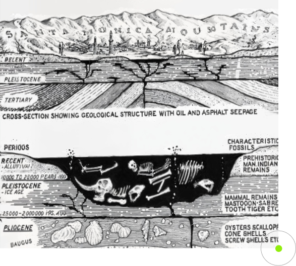 Since 1906, more than ONE MILLION FOSSILIZED REMAINS have been recovered from the La Brea tar pits, representing vertebrate, plant and invertebrate species.